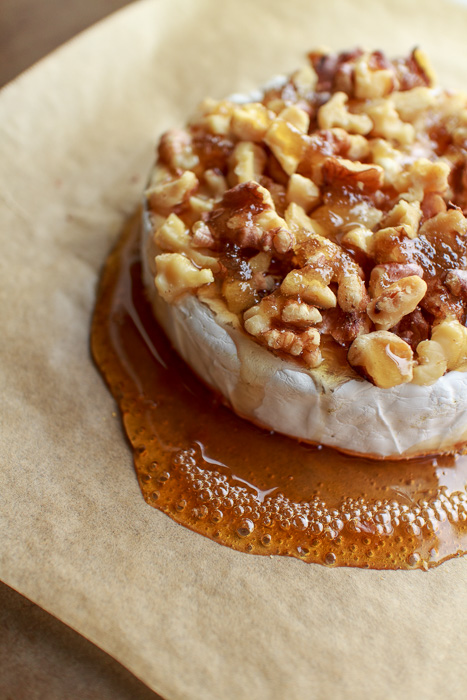 This honey walnut topped baked brie is a simple and addictive happy hour appetizer or dinner party dessert. Well, pre-dessert, actual dessert must still be involved.
