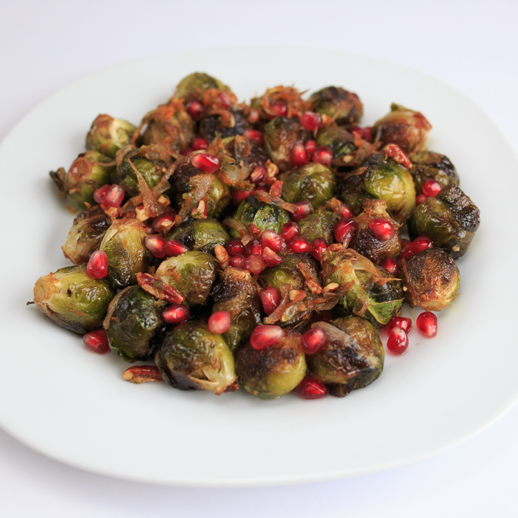 Roasted Brussels Sprouts with Pomegranate Molasses and Vanilla Pecan Butter